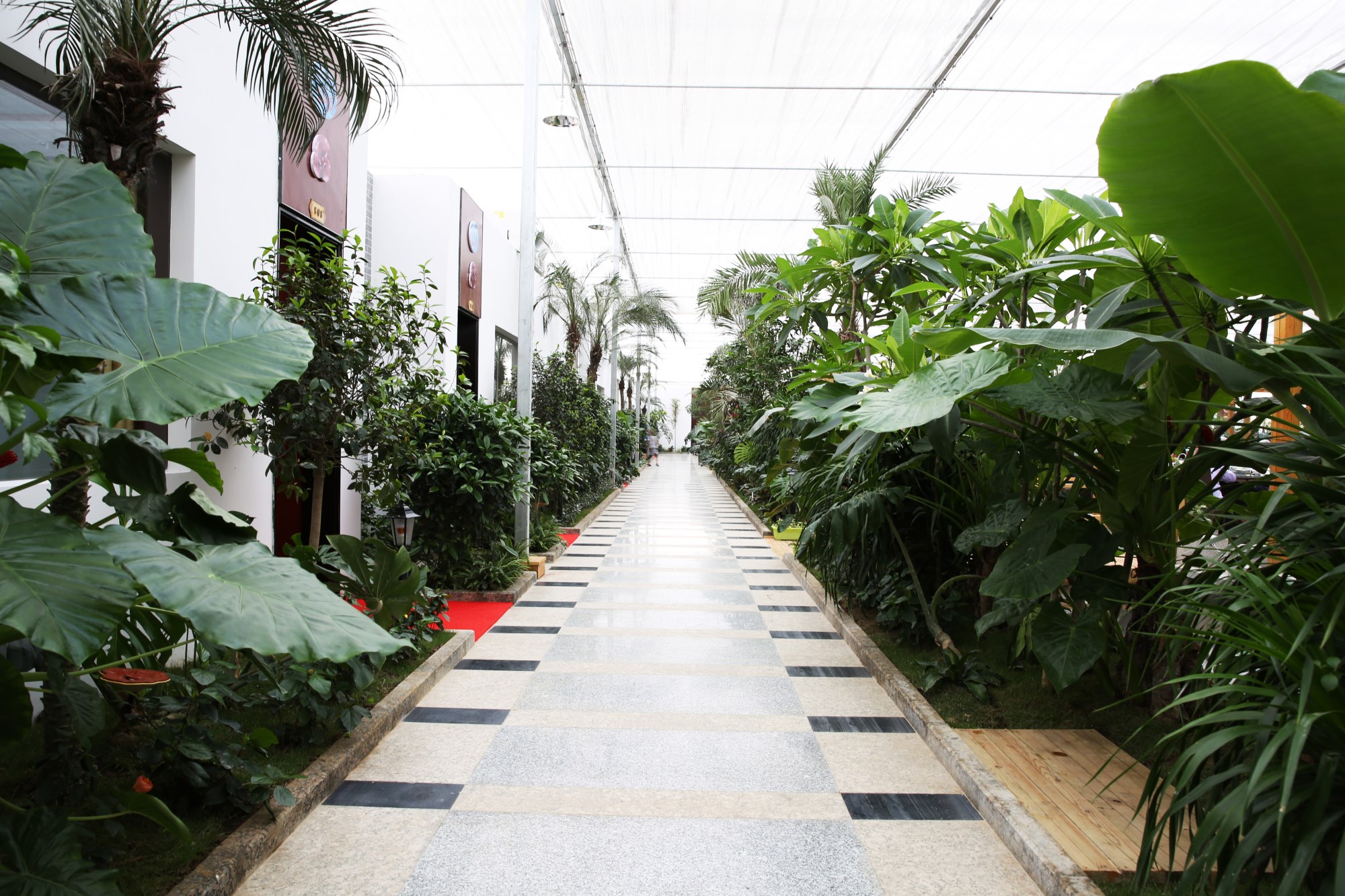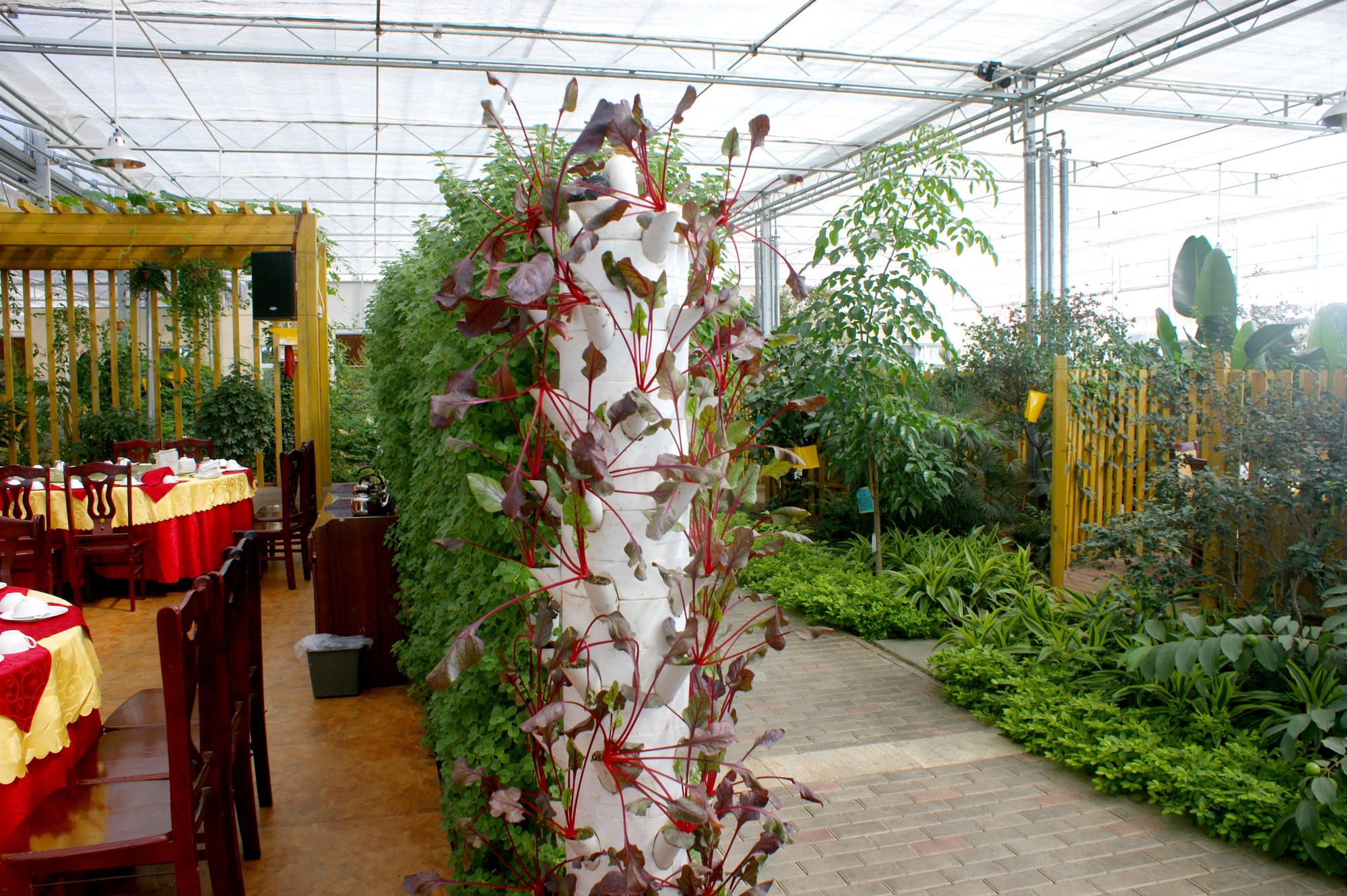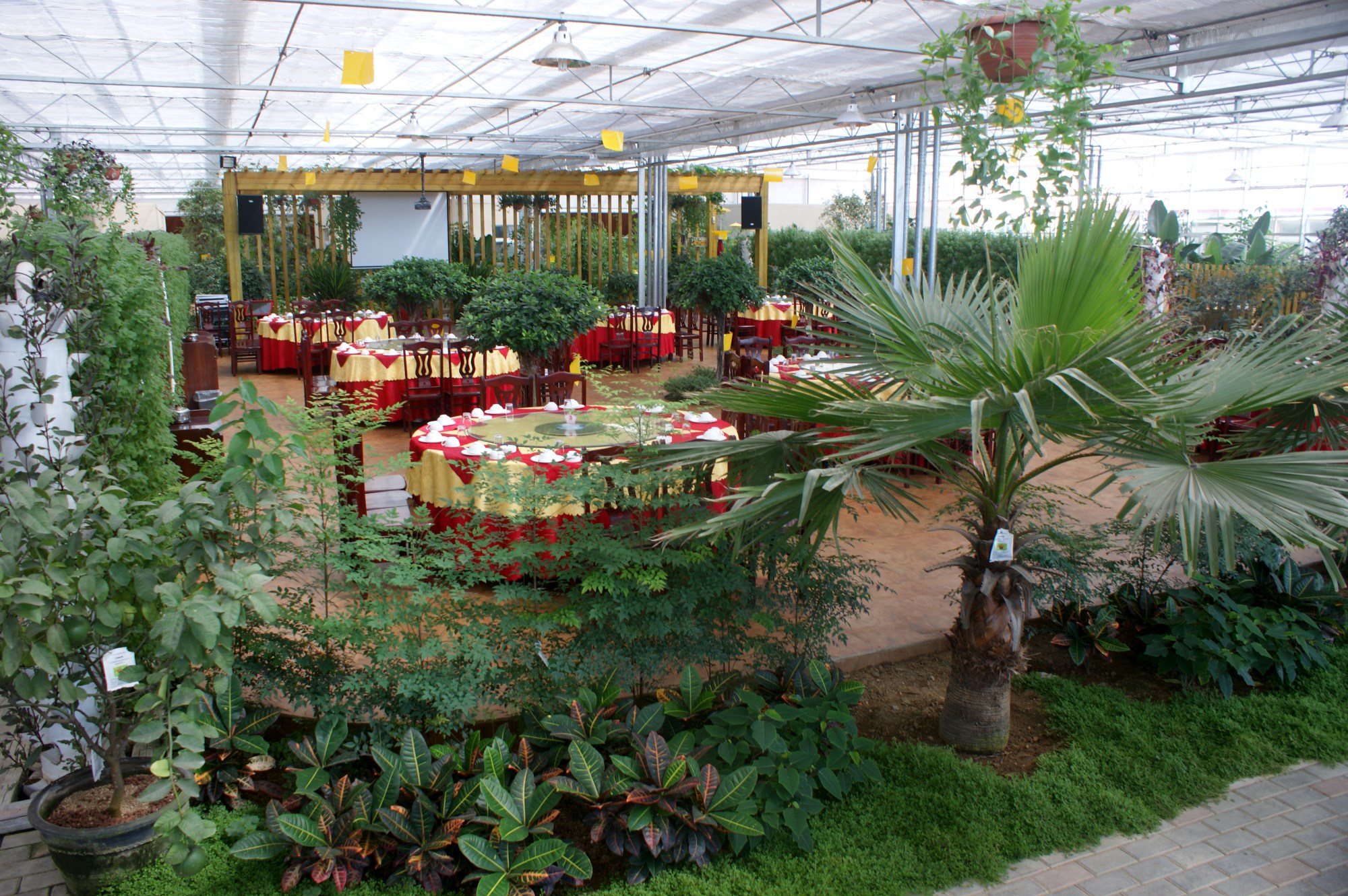 特點: 1面積大,多采用文洛式,覆蓋材料多為PC板或者玻璃. 2生態餐廳對溫室應用的一項功能拓展, 通過配套設施,對室內溫度、濕度的有效控制。 3一般高度與跨度大于生產型溫室,以適應園內人塑景觀、大型植物景觀及餐廳要求。 規格: